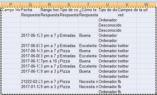 Al descargar los resultados, estos parámetros se verán reflejados al final de la tabla Excel cómo una columna más de respuestas.