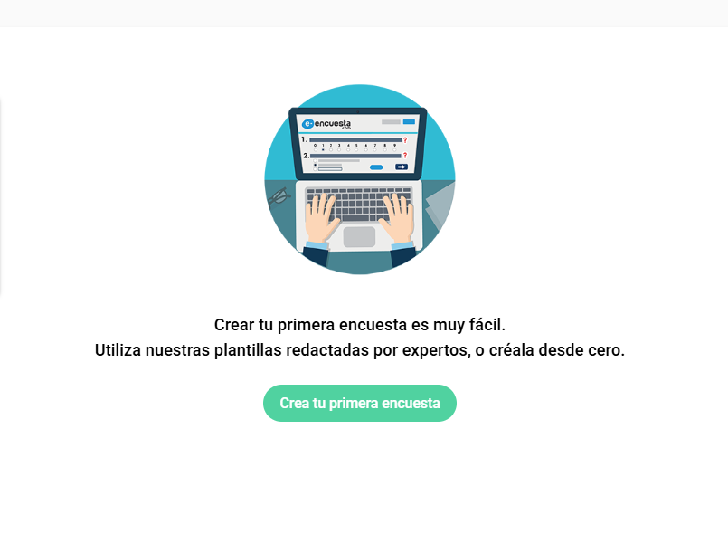 Cuando accedas por primera vez y hasta que crees tu primera encuesta, en lugar de este botón azul verás el botón de creación de encuesta en color verde "Crea tu primera encuesta".